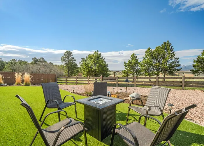 La Mountain Breeze Villa W Mountain Views And Air Hockey incluye una cocina bien equipada con lavaplatos, cafetera/tetera y un horno, lo que permite a los huéspedes preparar sus propias comidas. Los huéspedes pueden llegar fácilmente al aeropuerto Colorado Springs, que está a 48 minutos en coche de esta villa.